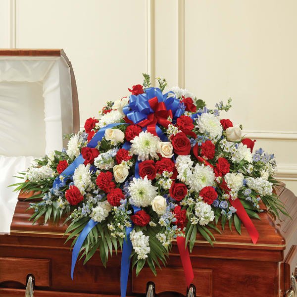 Blue, red and White Casket Spray